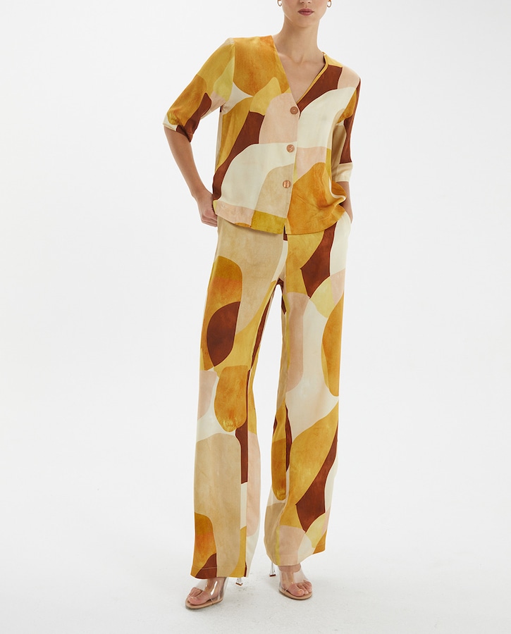 Camisa estampada de mujer de manga francesa ancha y escote pico