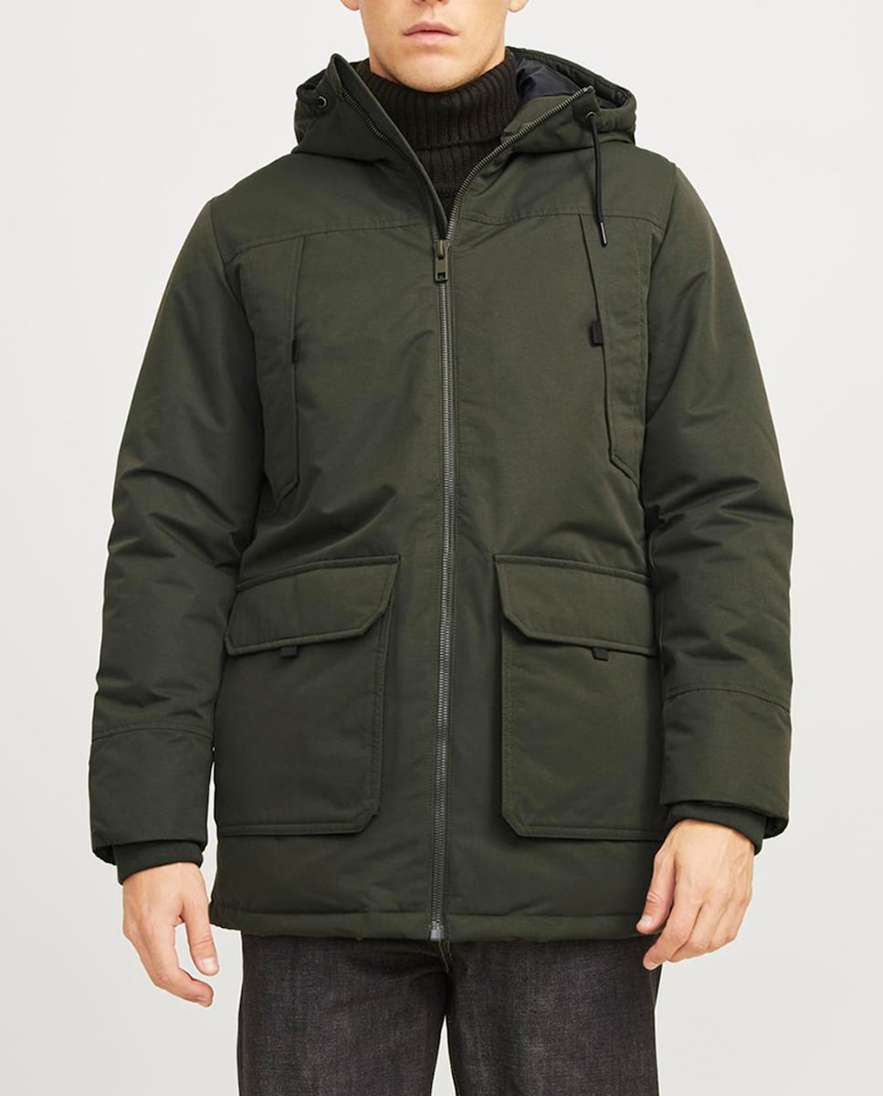 Abrigo confort concierre mediante cremallera cuello con capucha de hombre