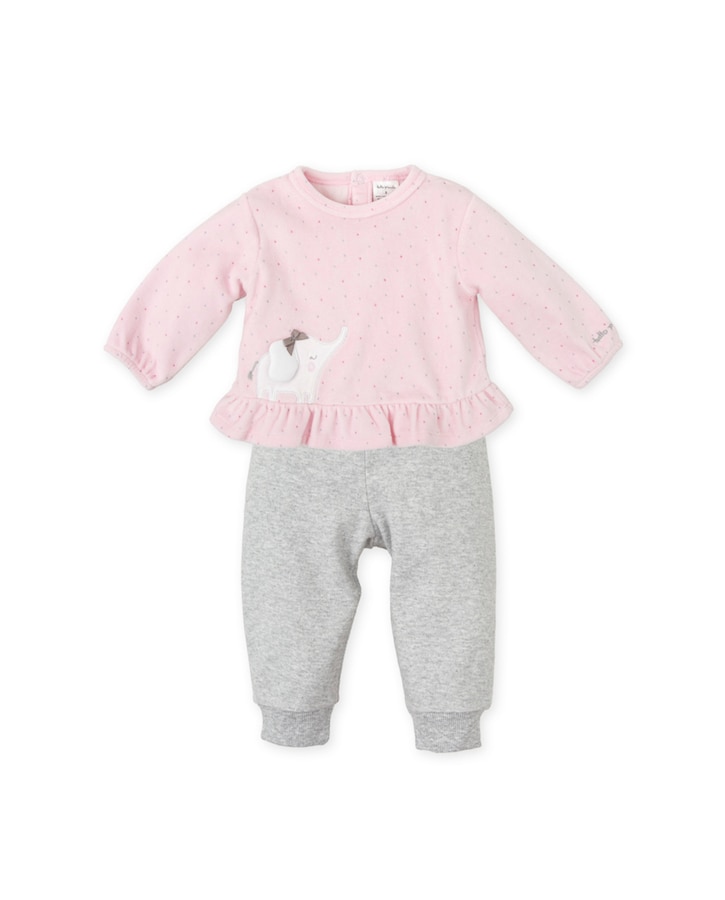 Conjunto de bebé niña 2 piezas sin pie rosa con bordado elefante