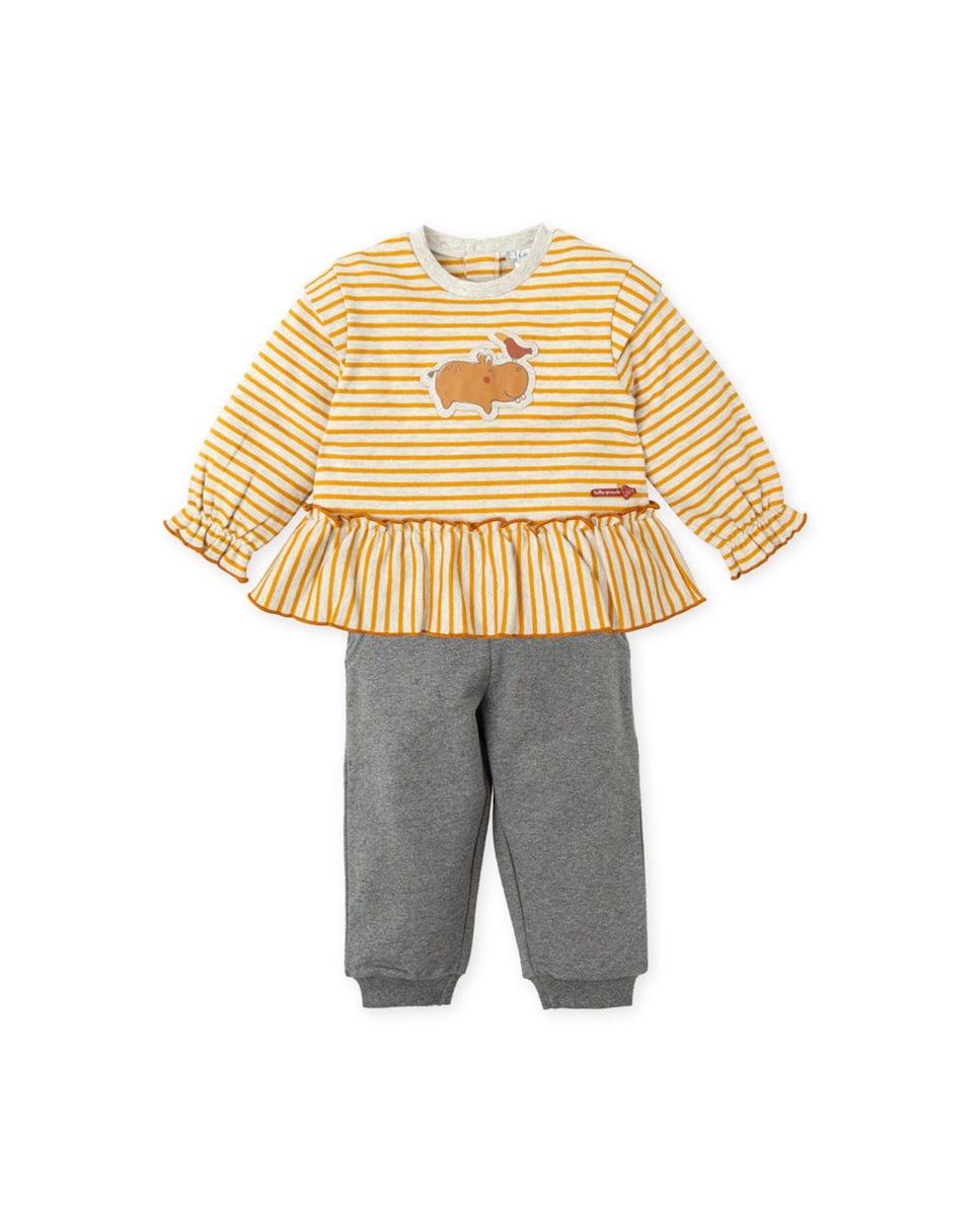 Conjunto de bebé niña 2 piezas sin pie mostaza con hipopótamo