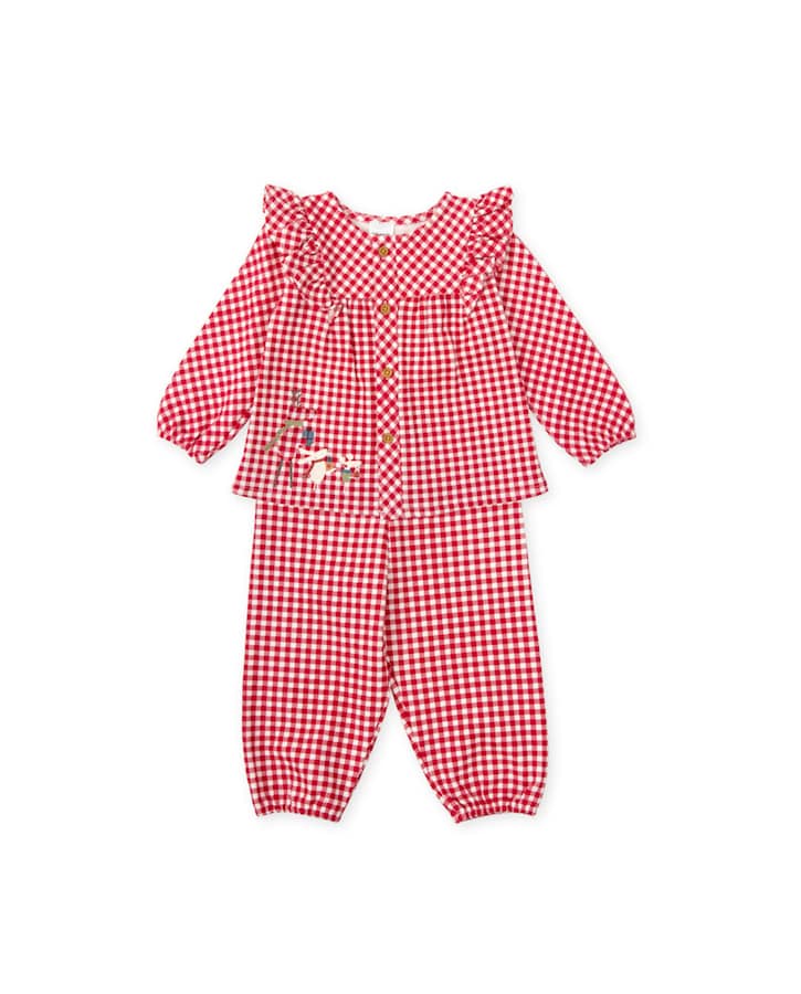 Pijama de bebé niña 2 piezas a cuadros en rojo