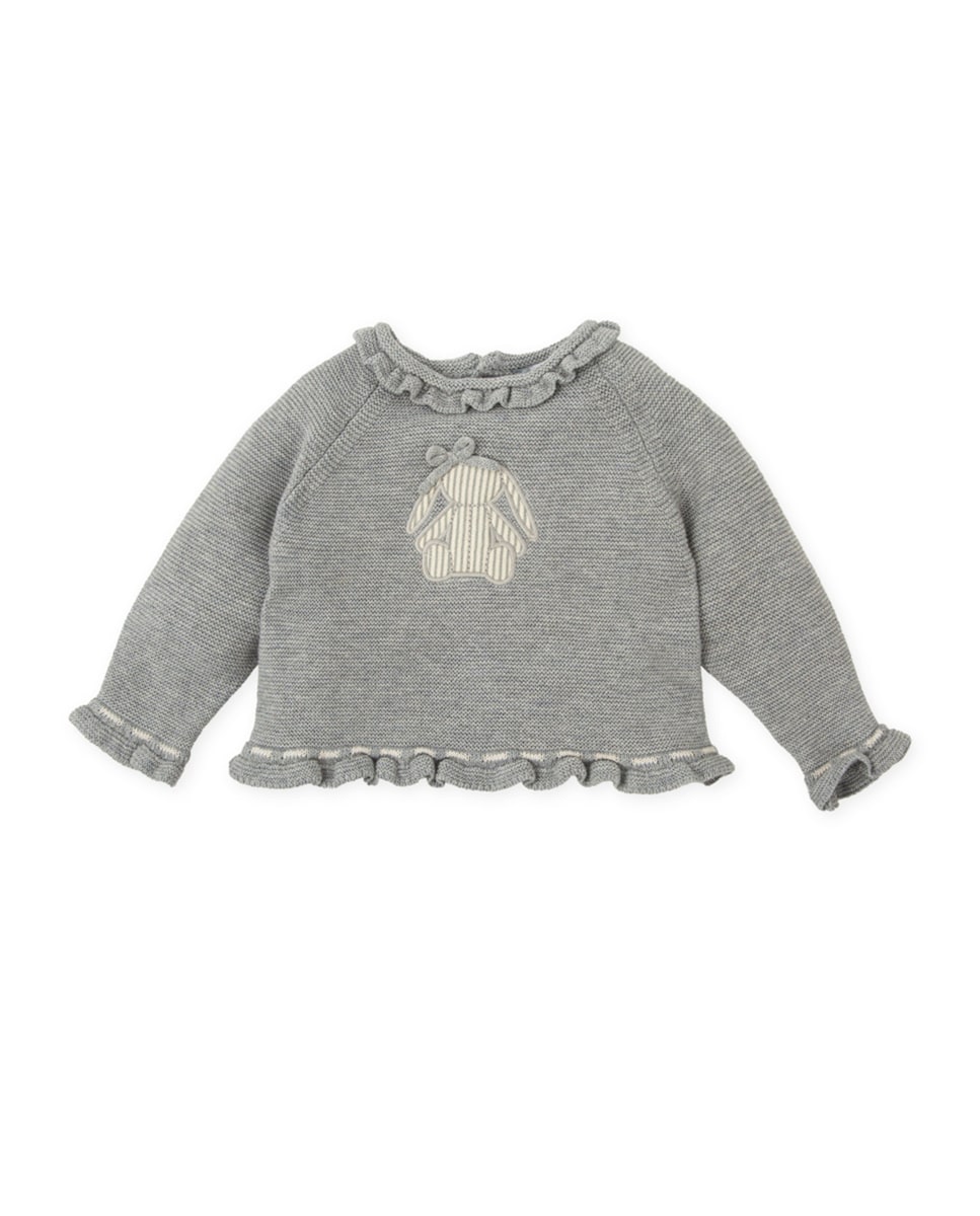 Jersey de bebé niña gris con conejito bordado