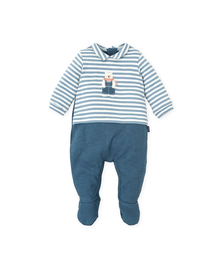 Pelele de bebé niño largo con pie acero con bordado oso