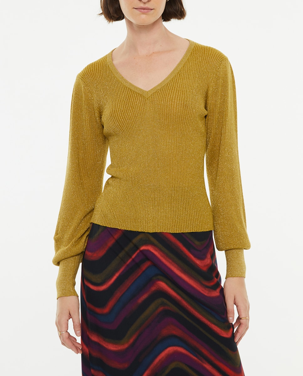 Jersey de mujer con brillo manga larga abullonada