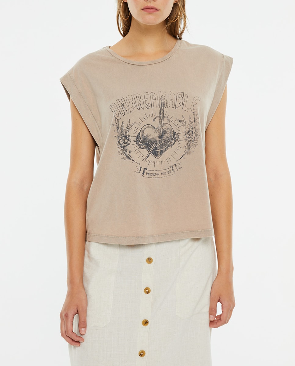 Camiseta de mujer beige estampado corazón unbreakeable
