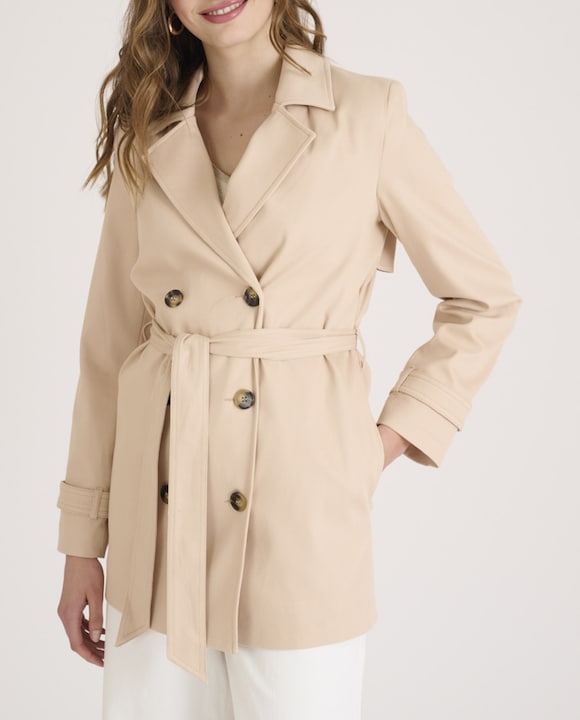 Gabardina de mujer forma corta y cierre con doble botonadura