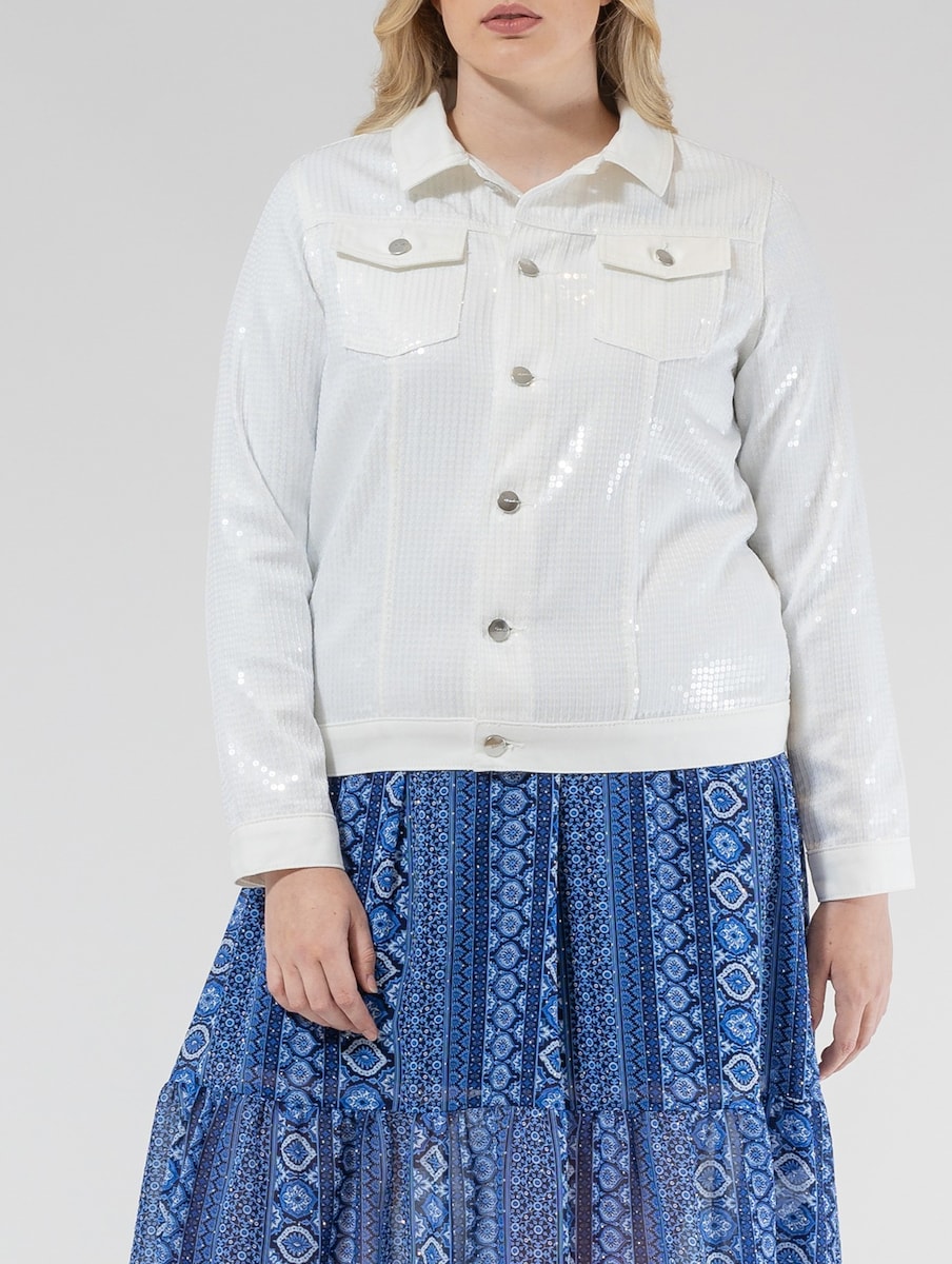 Cazadora de mujer lentejuelas bolsillos plaston
