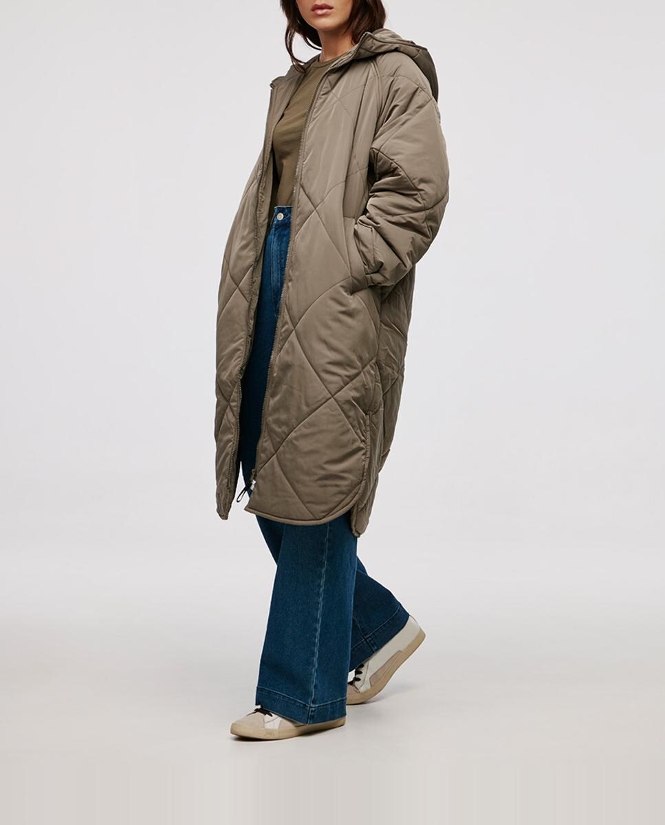 Abrigo acolchado largo con dibujo de mujer