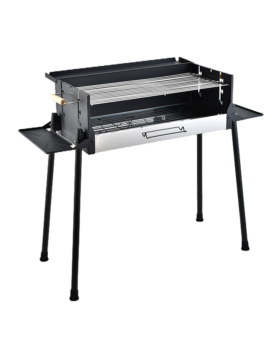 Barbacoa de carbón con bandeja de acero inoxidable y 3 alturas de cocción.