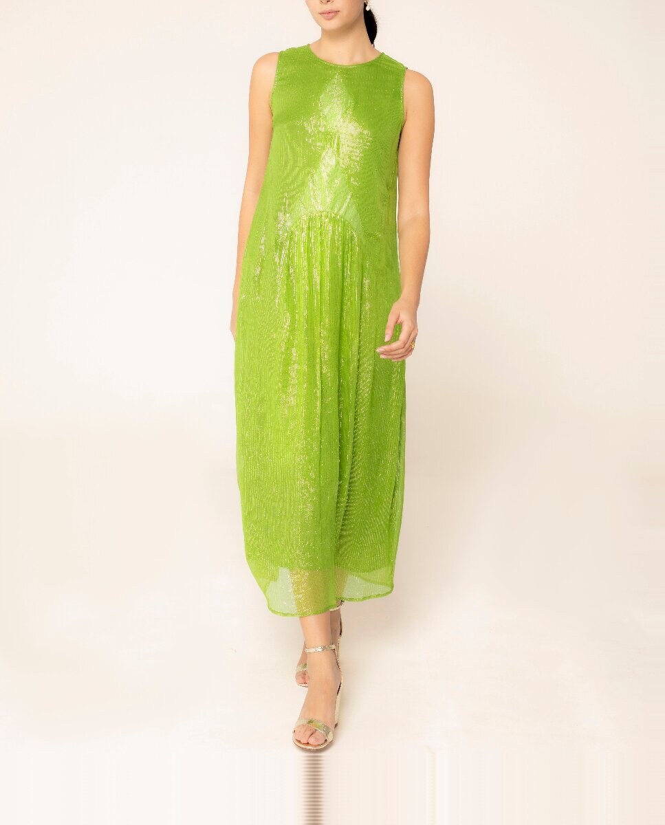 Vestido largo de fiesta sin mangas con lentejuelas