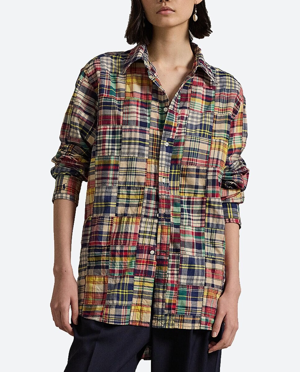 Camisa de mujer de algodón con estampado de cuadros