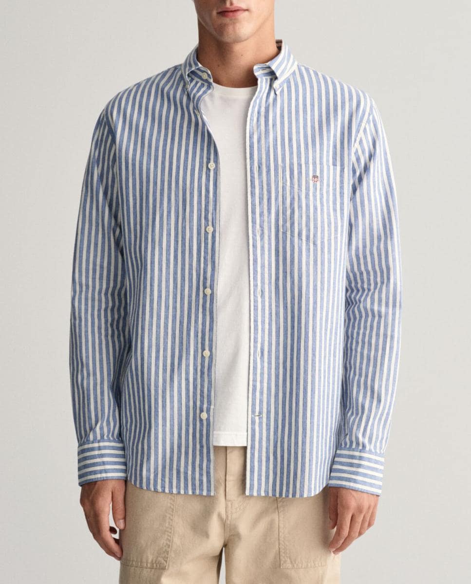 Camisa de hombre en mezcla de algodón y lino con rayas.