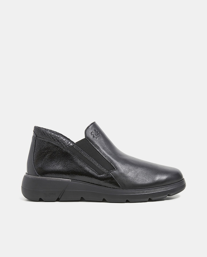 Botines en combinado en piel con charol detalle de cristales en elastico