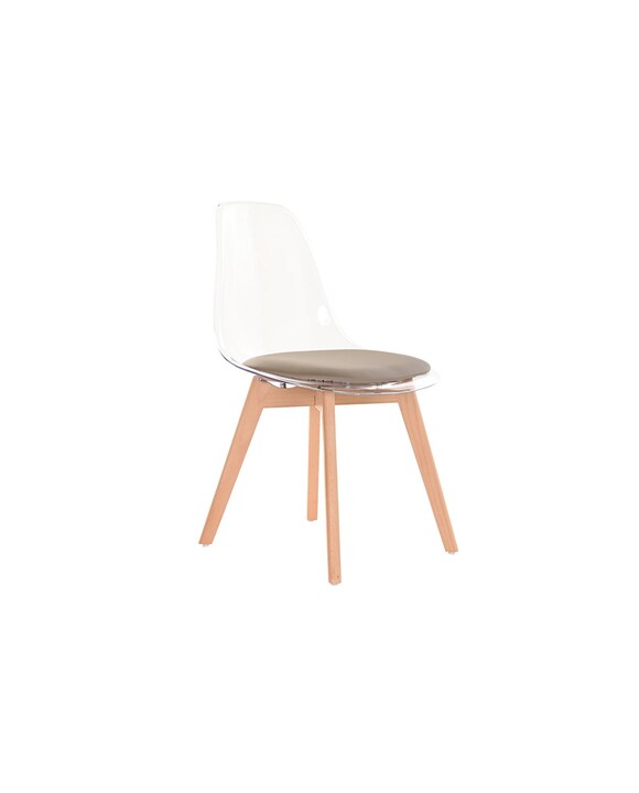 Silla policarbonato madera 54x47x81 tapizado beige