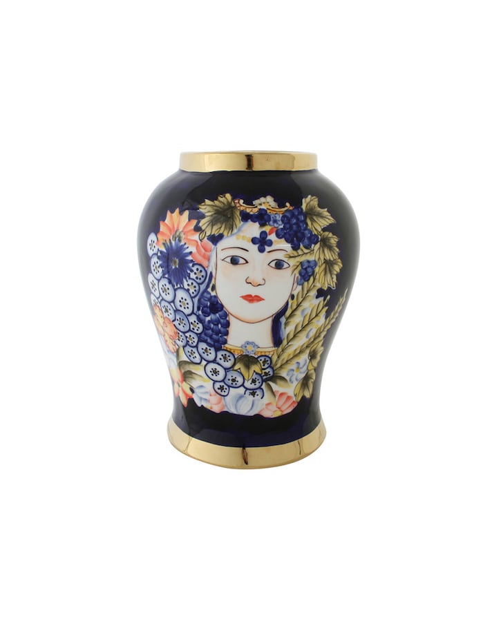 Jarrón porcelana cara multicolor