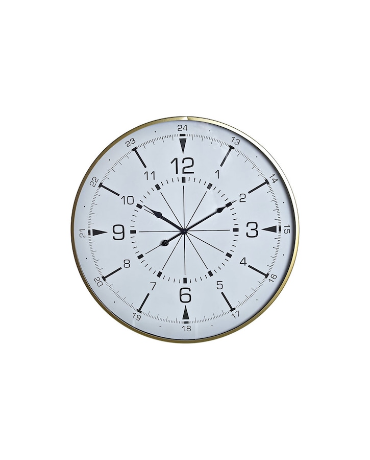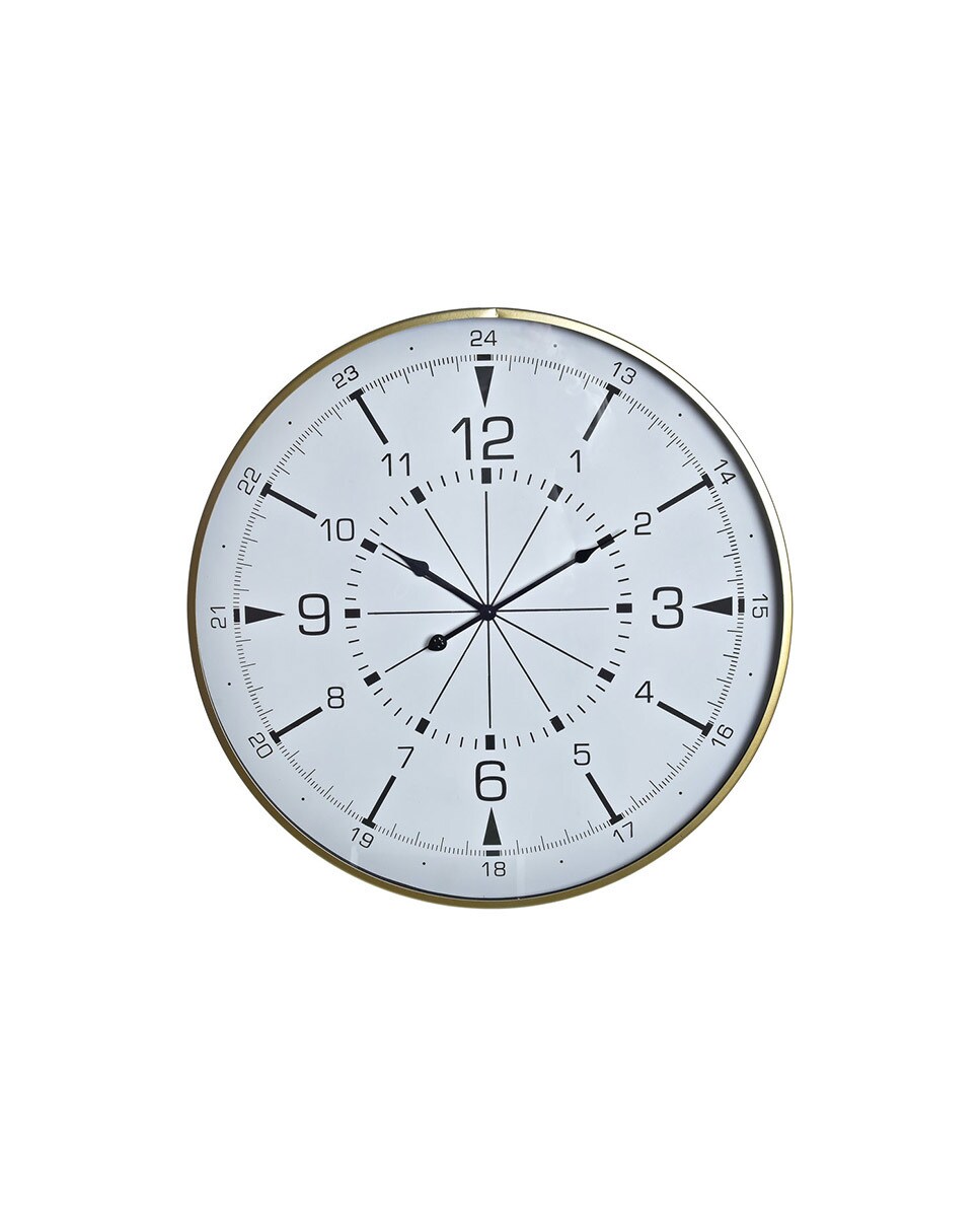 Reloj pared metal cristal brujula dorado