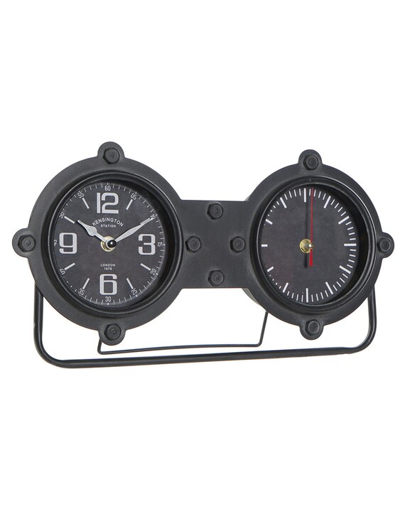 Reloj sobremesa hierro cristal 38x7x20 negro