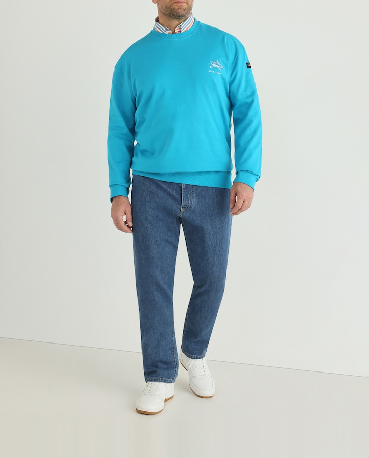 Felpa de hombre "Shark Trust" logo tiburón turquesa tallas grandes
