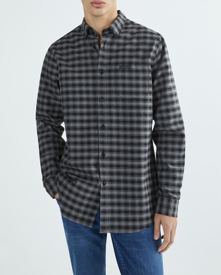 Camisa de hombre de manga larga y diseño de cuadros pequeños