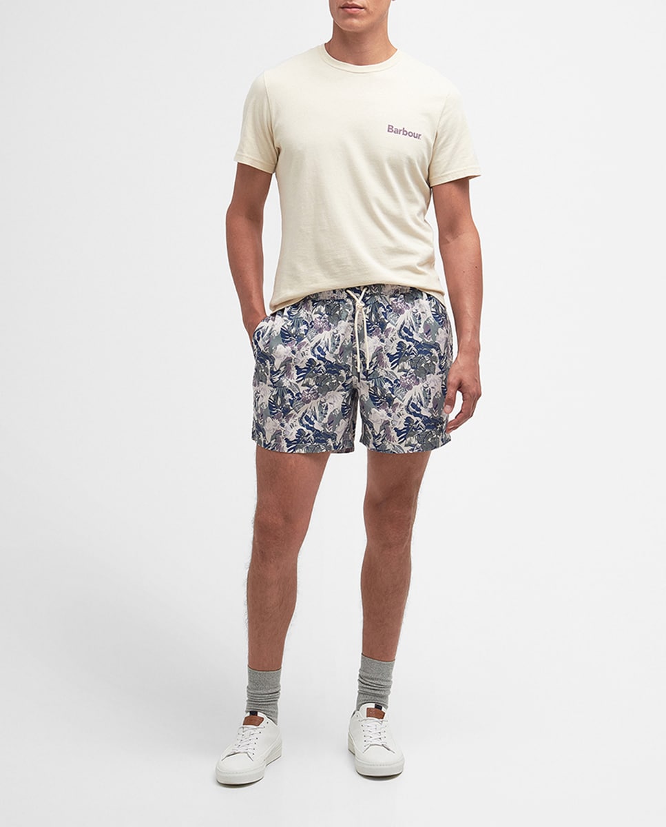 Short de baño estampado tropical con cordón en la cintura de hombre.