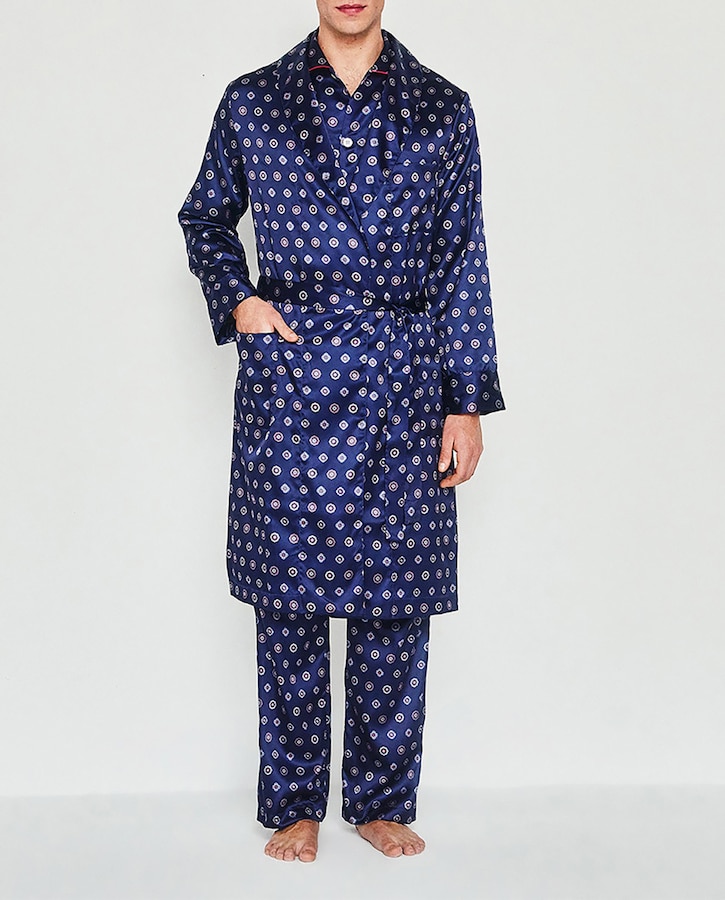 Bata de hombre cruzada estampada saten