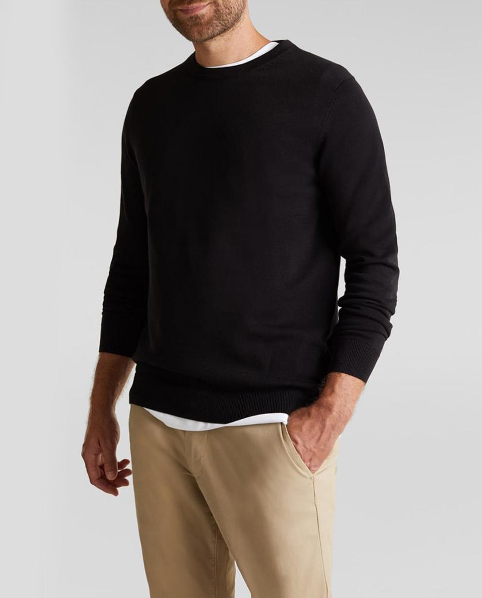 Jersey básico de hombre en algodón ecológico Pima negro con cuello caja