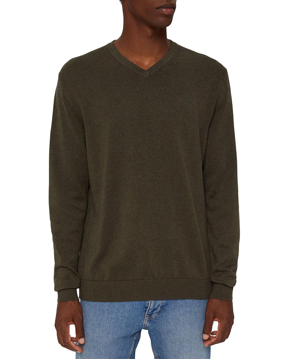 Jersey básico de hombre en algodón ecológico Pima kaki con cuello pico