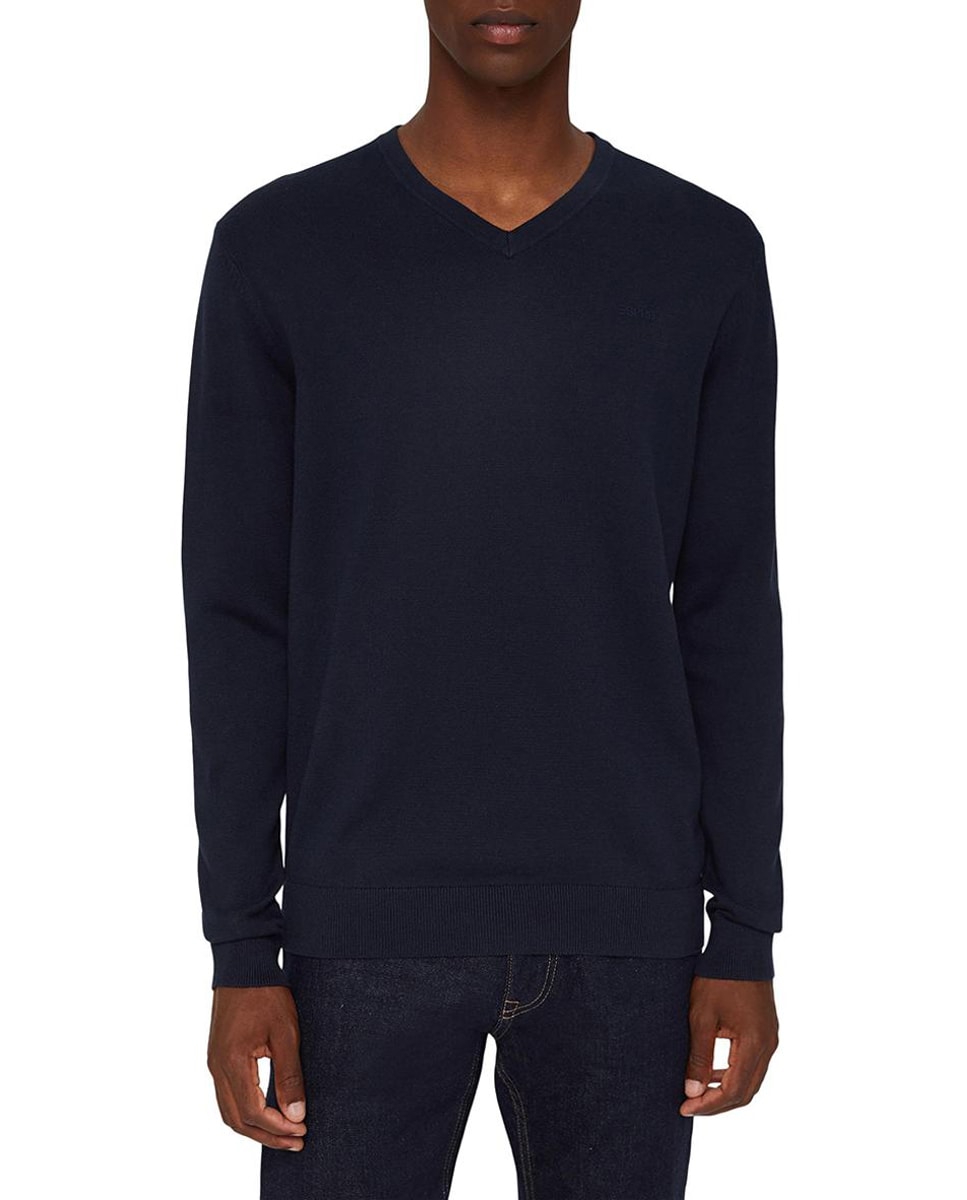 Jersey básico de hombre en algodón ecológico Pima azul marino con cuello pico