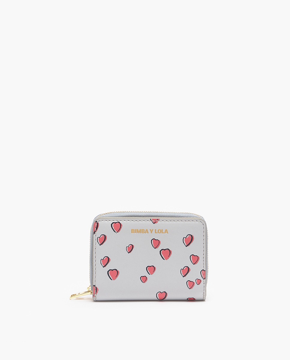 Cartera solapa piel print Small Hearts gris