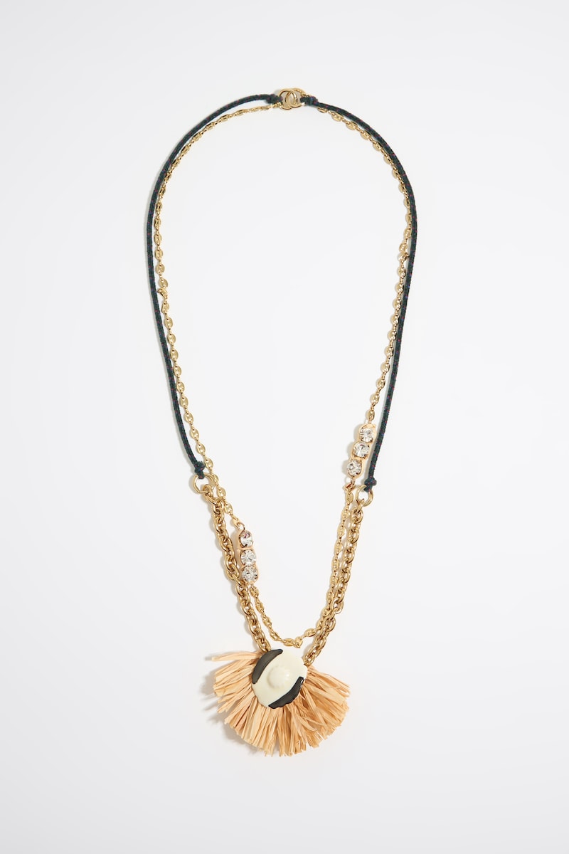 Collar de mujer flor cerámica y rafia