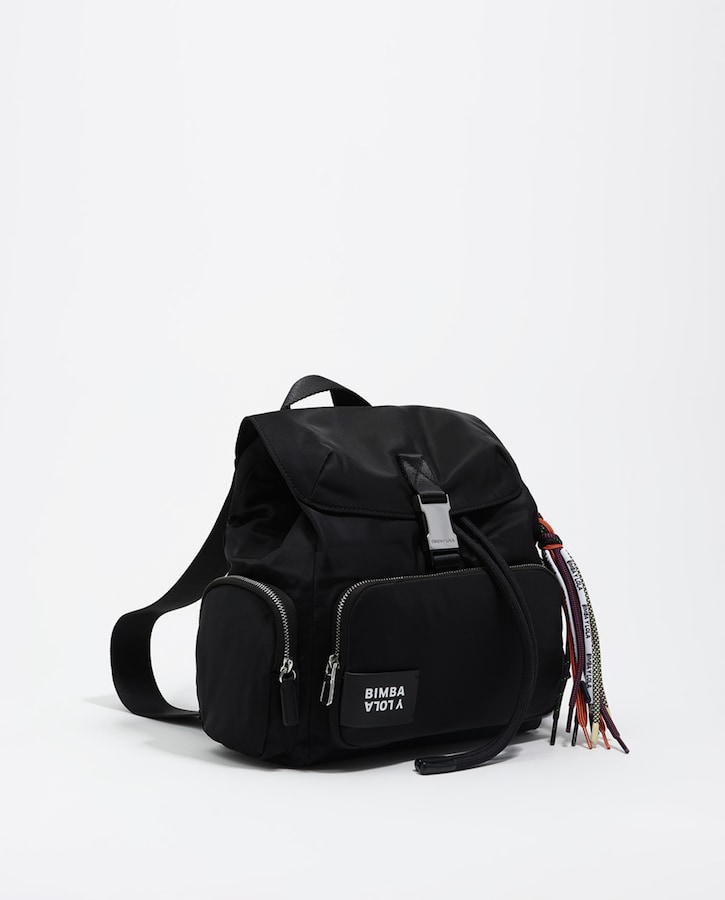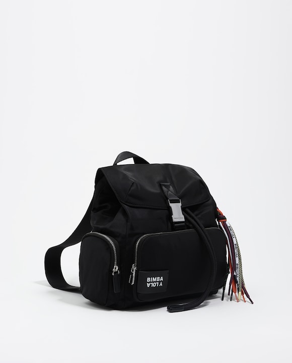 Mochila de nylon con multibolsillos.