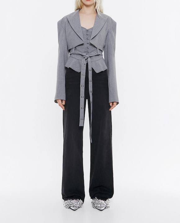 Chaqueta de mujer corta estilo sastre cruzada de lana fría.