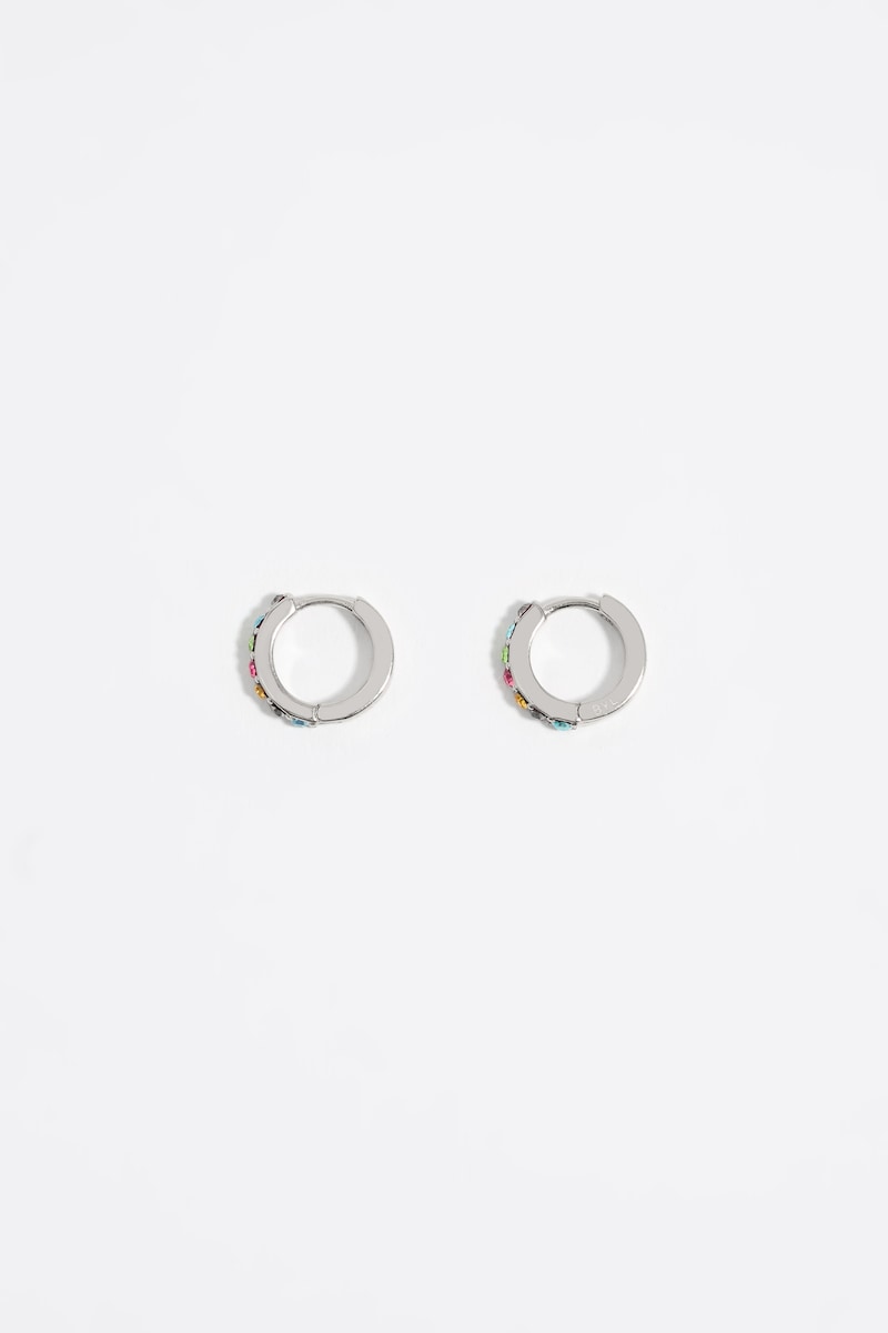 Pendientes aro mini plateado cristales de mujer