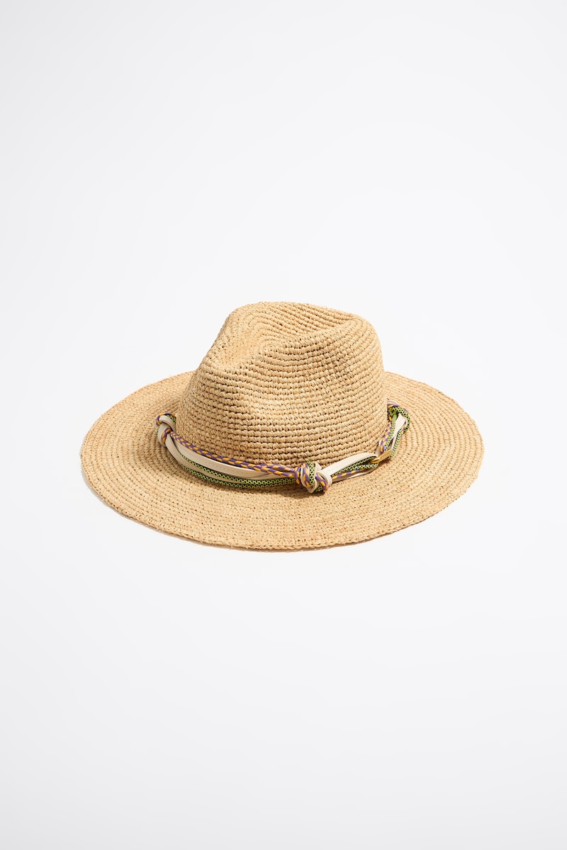Gorro rafia de mujer con logo bordado