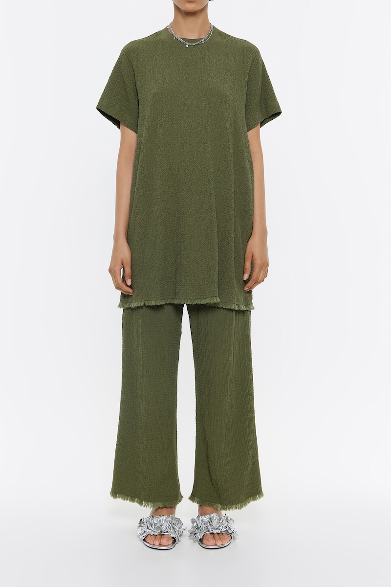 Pantalón recto desflecado de mujer