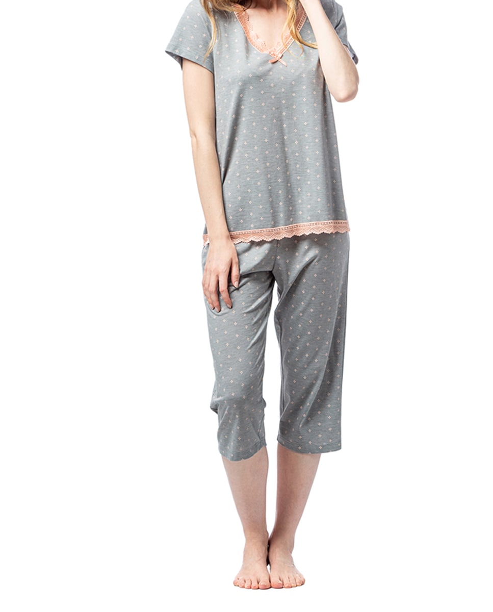 Pijama manga corta microraya estampado flor de mujer