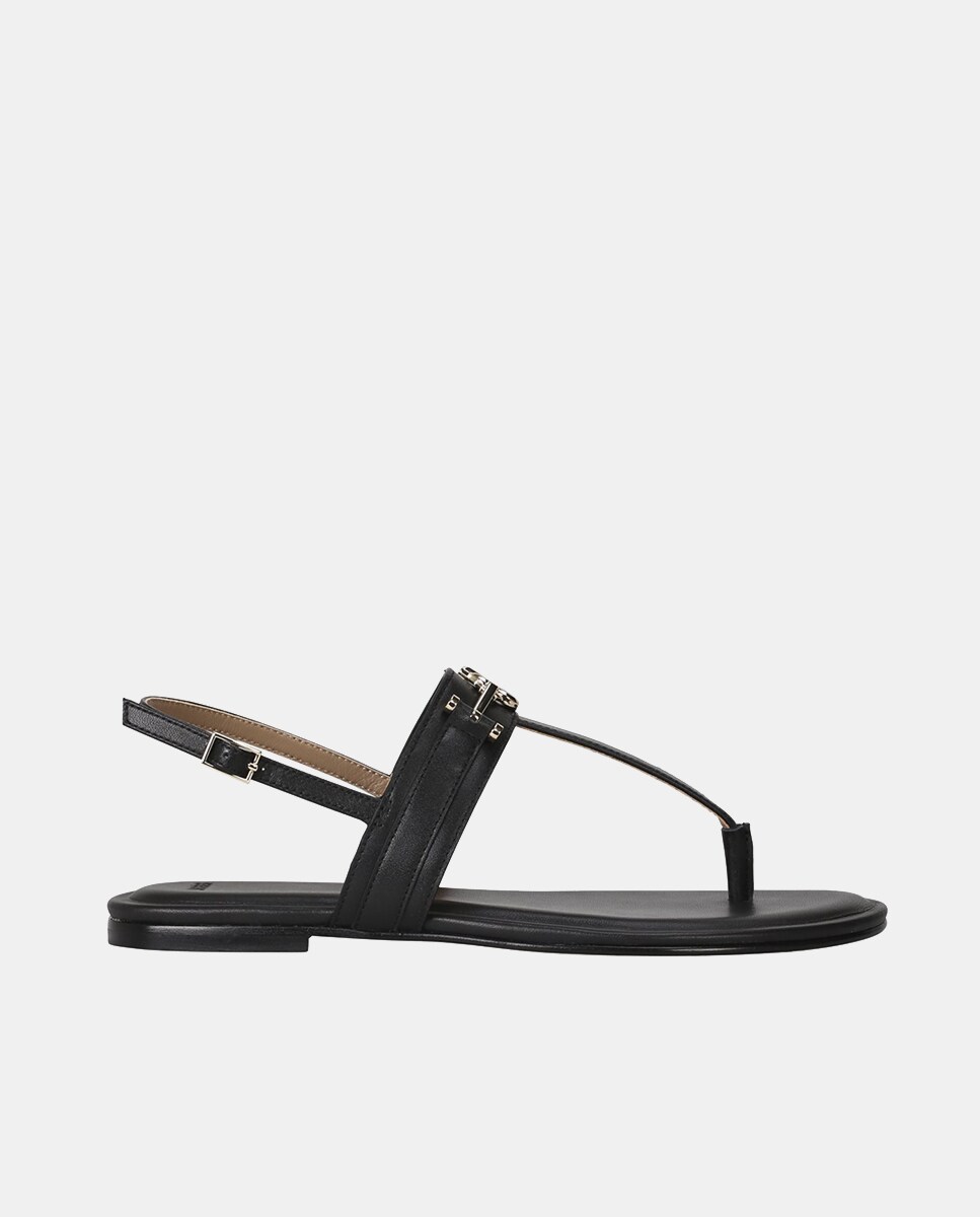 Sandalia plana de mujer de piel
