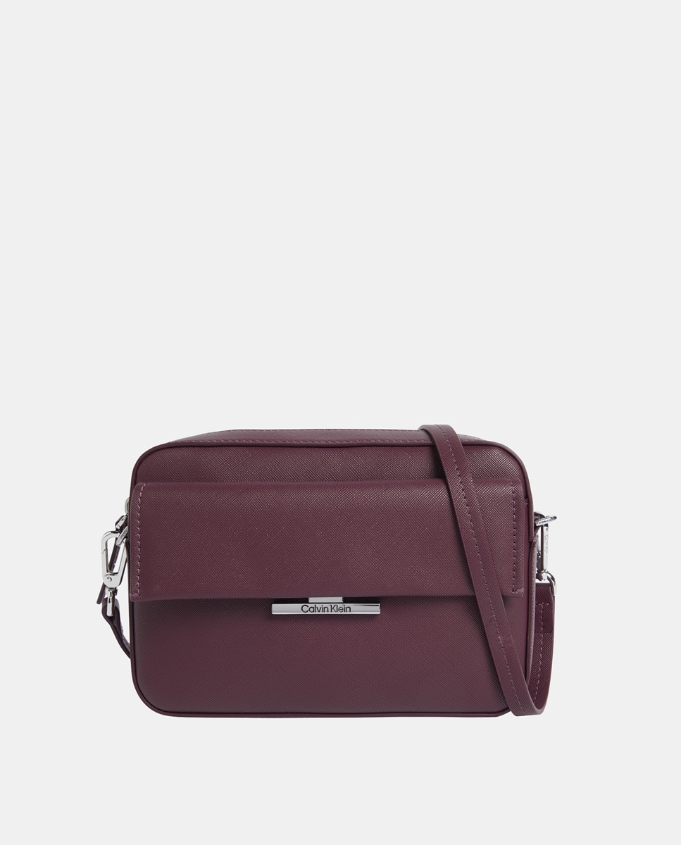 Bolso bandolera en acabado saffiano, cierre con botón y bolsillo depantero
