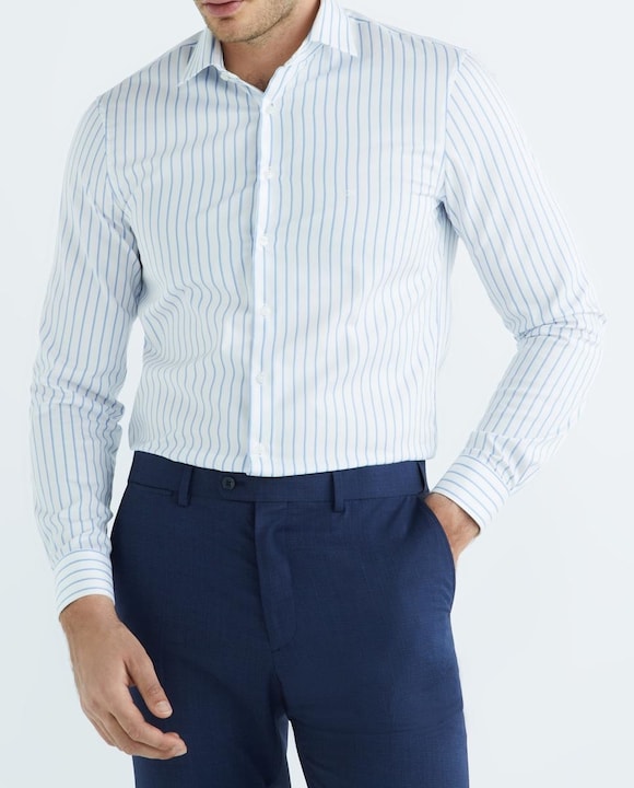 Camisa de vestir de hombre de corte custom en color blanco con rayas
