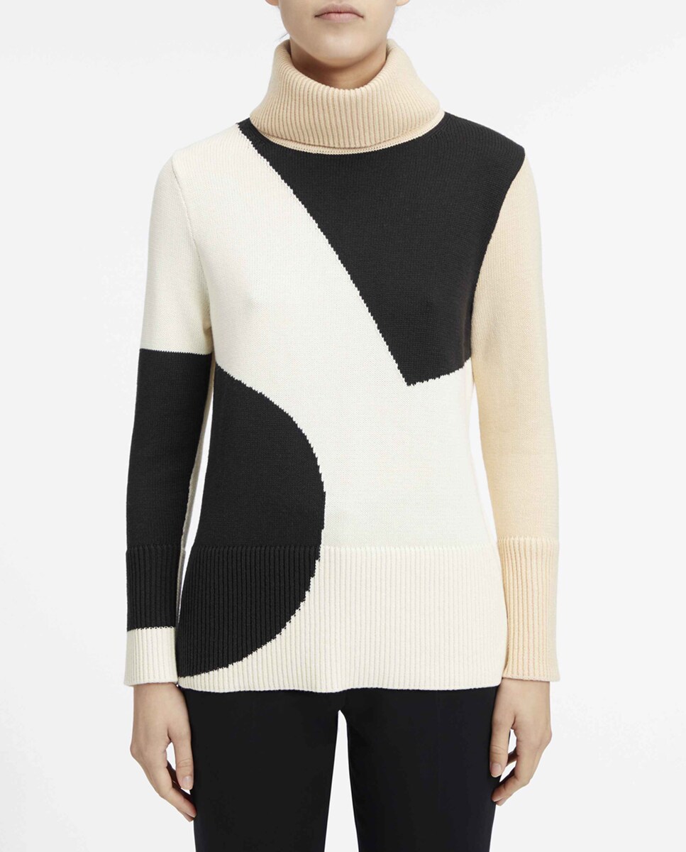 Jersey de mujer de punto con estampado abstracto colorblock y manga larga