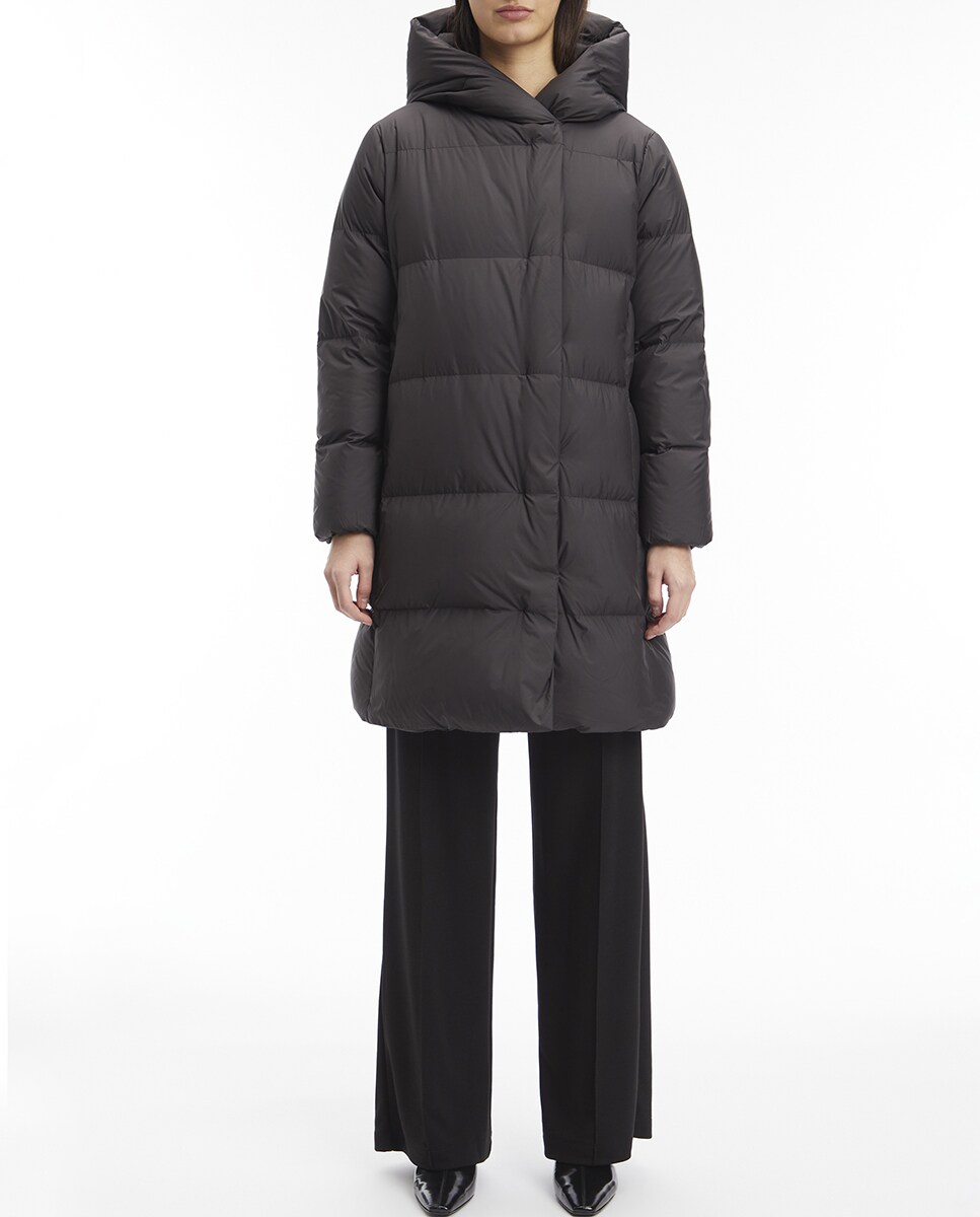 Abrigo de mujer largo acolchado con cuello chimenea