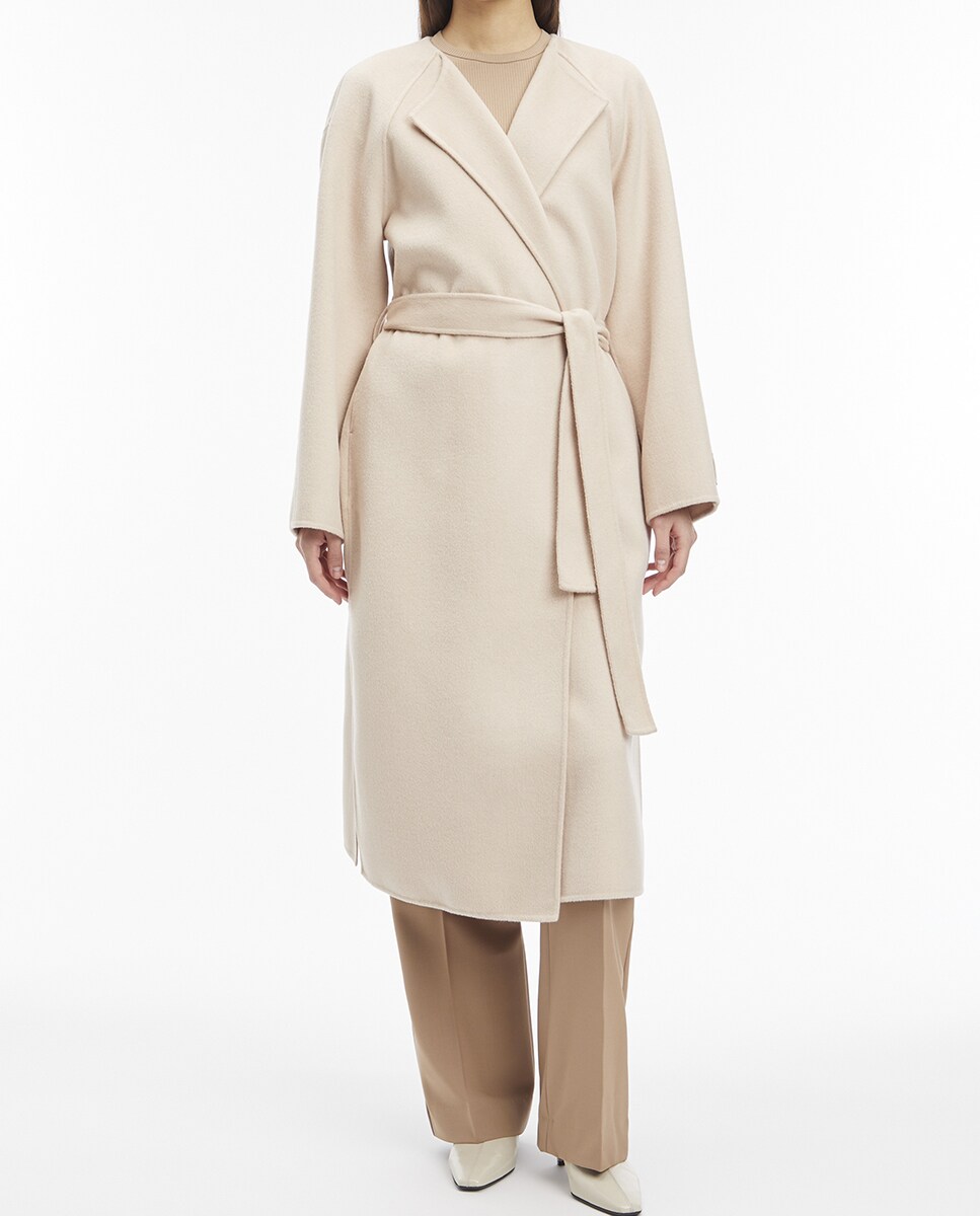 Abrigo de mujer largo cruzado con cinturón