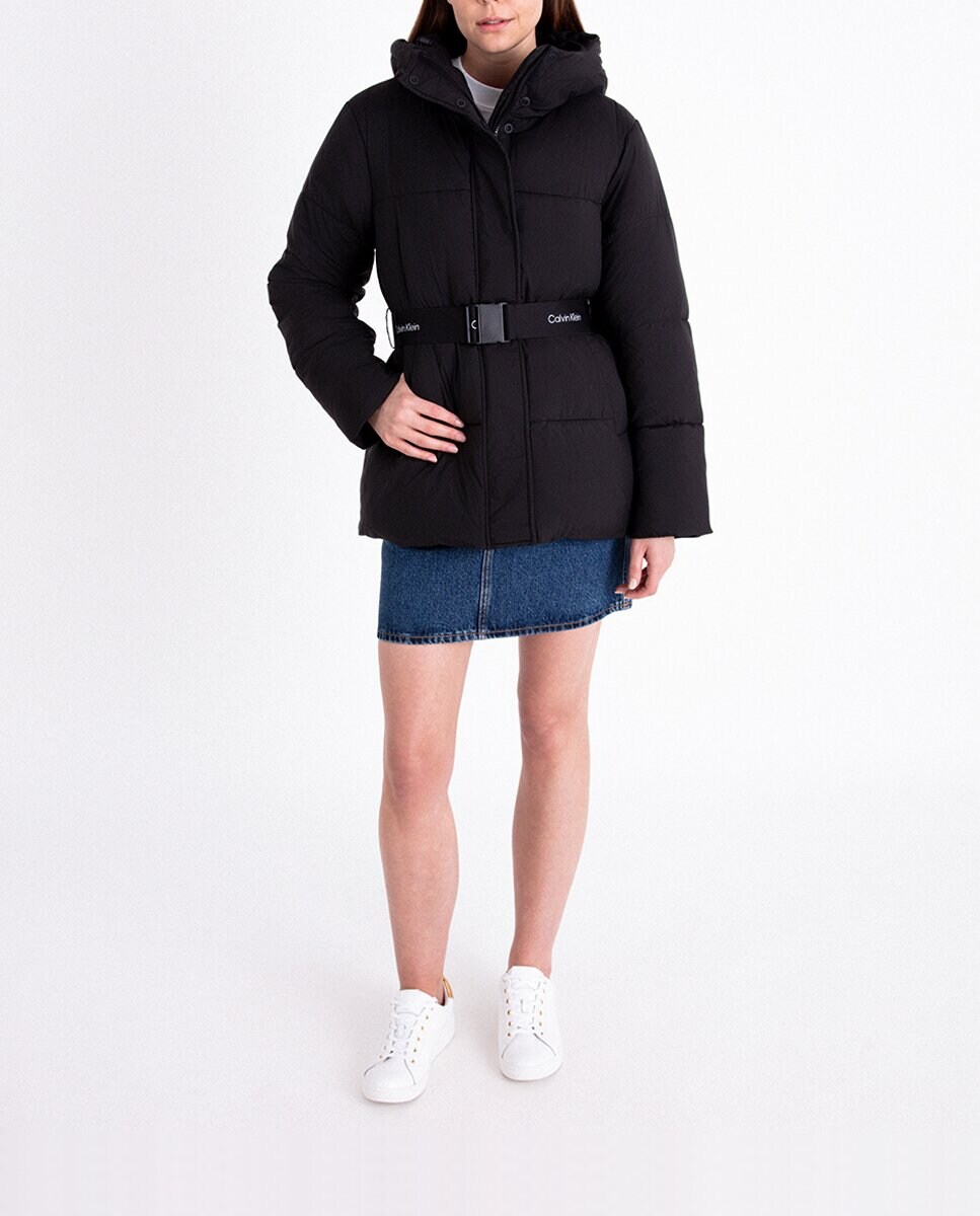 Plumífero Mujer corto con cinturón elástico
