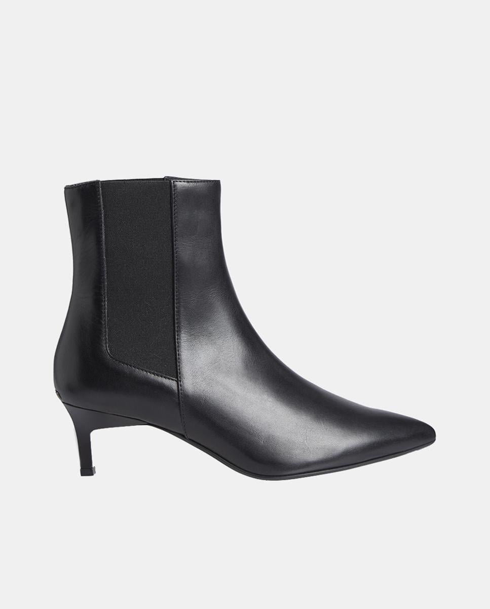 Botines de mujer en negro tipo Chelsea de piel con puntera afilada y tacón de aguja