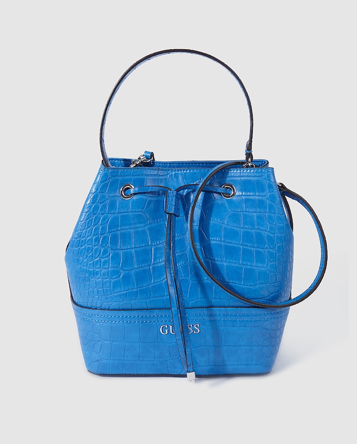 Bolso bandolera en acabado saffiano, cierre con botón y bolsillo depantero