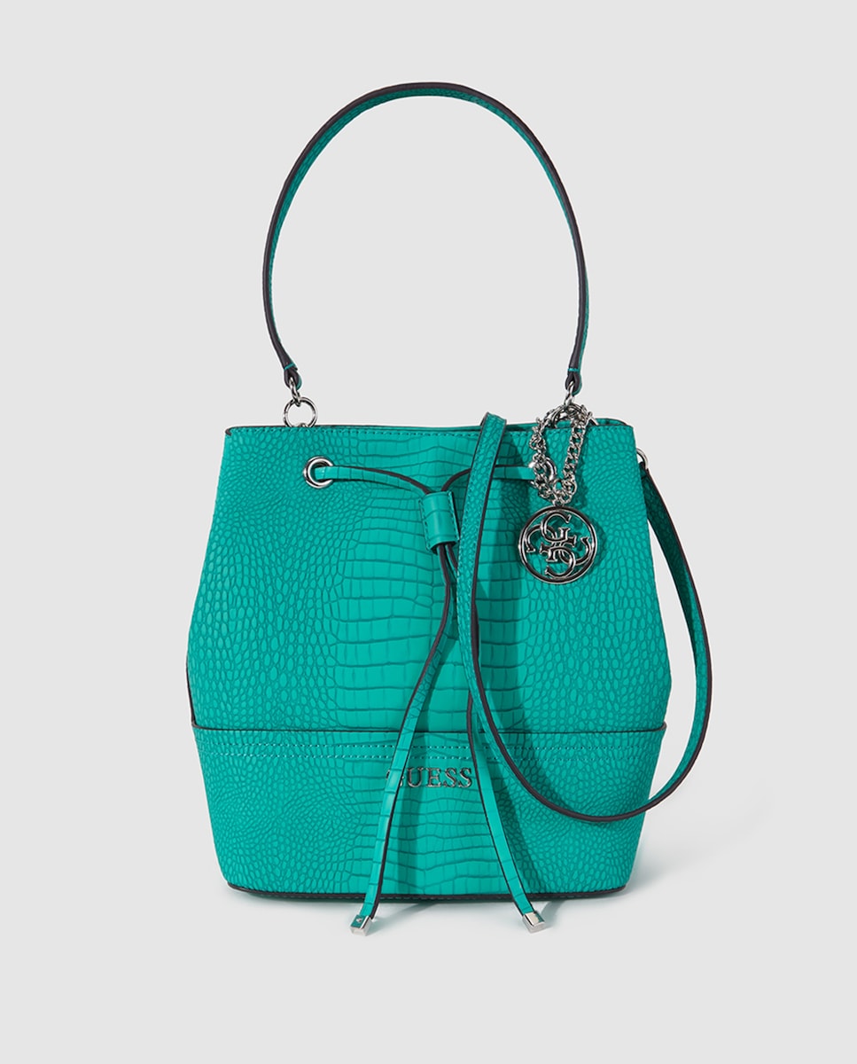 Bolso bandolera en acabado saffiano, cierre con botón y bolsillo depantero