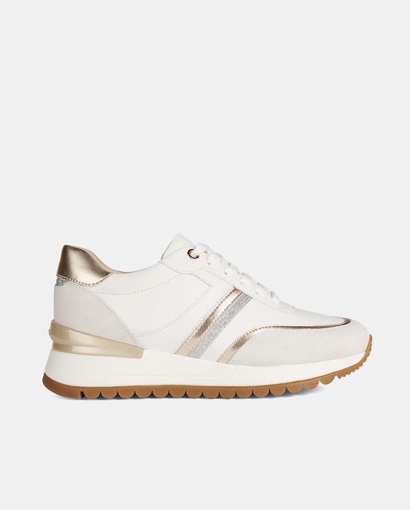 Zapatillas de mujer en blanco bajas tipo running con detalles metalizados y suela volumen