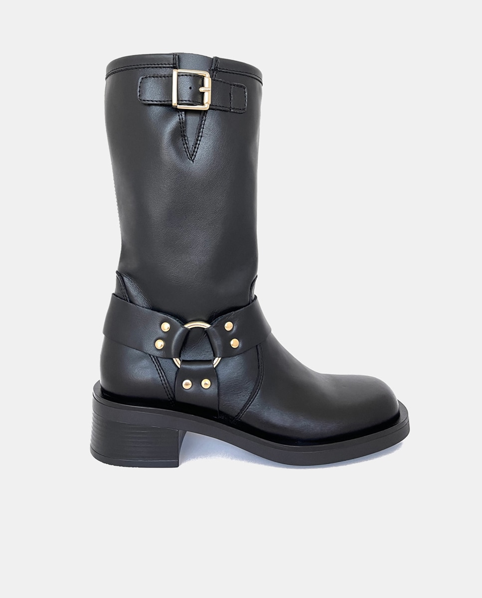 Botines de mujer tipo biker en piel con estribo