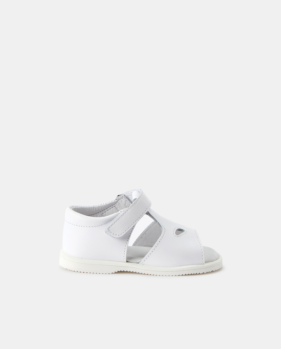 Sandalias de bebé niño en blanco de piel con cierre adherente