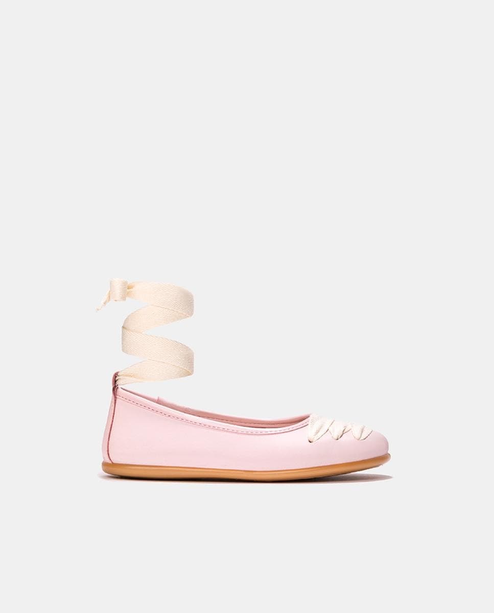 Bailarinas de niña con detalle de cintas en la puntera y tobillo